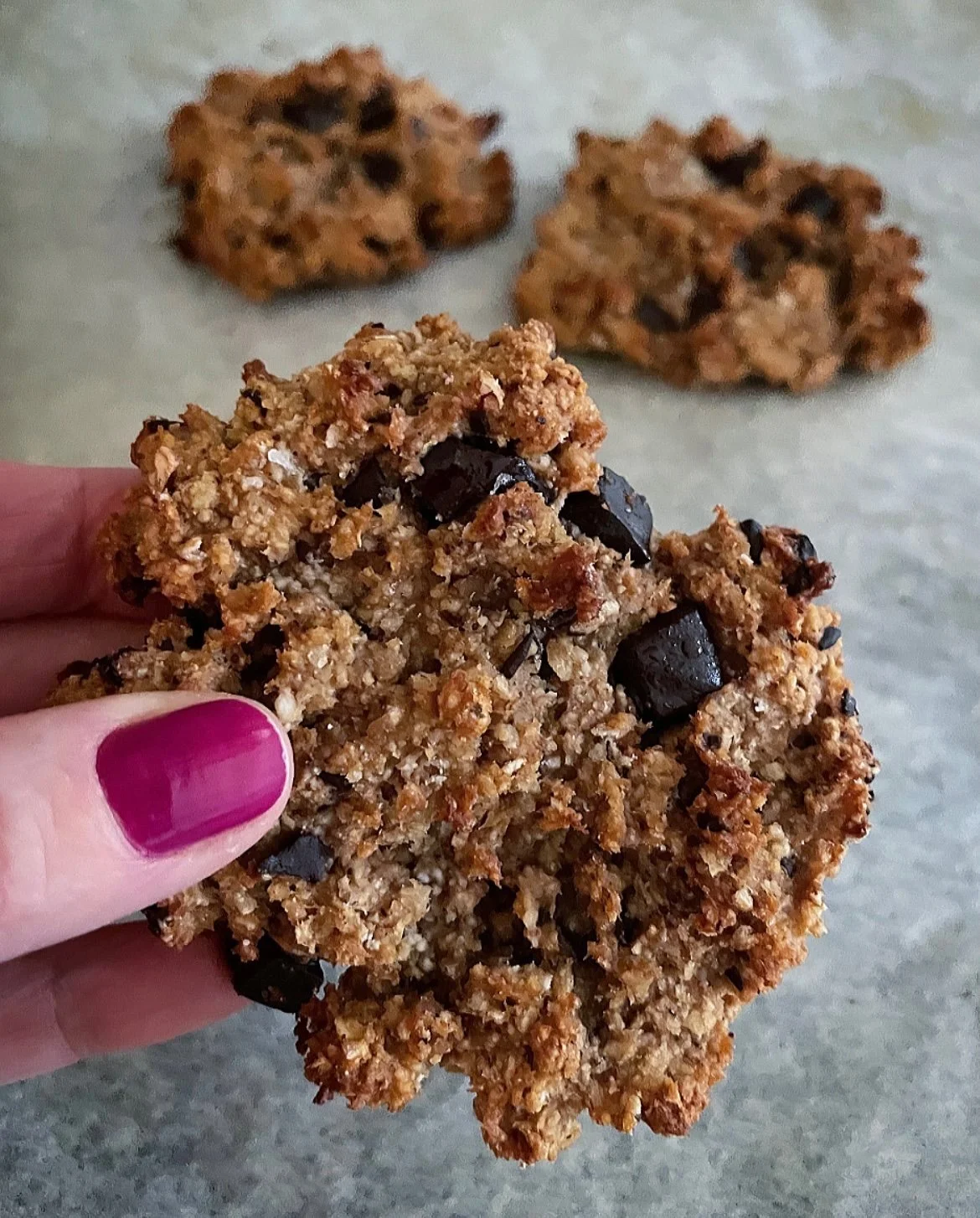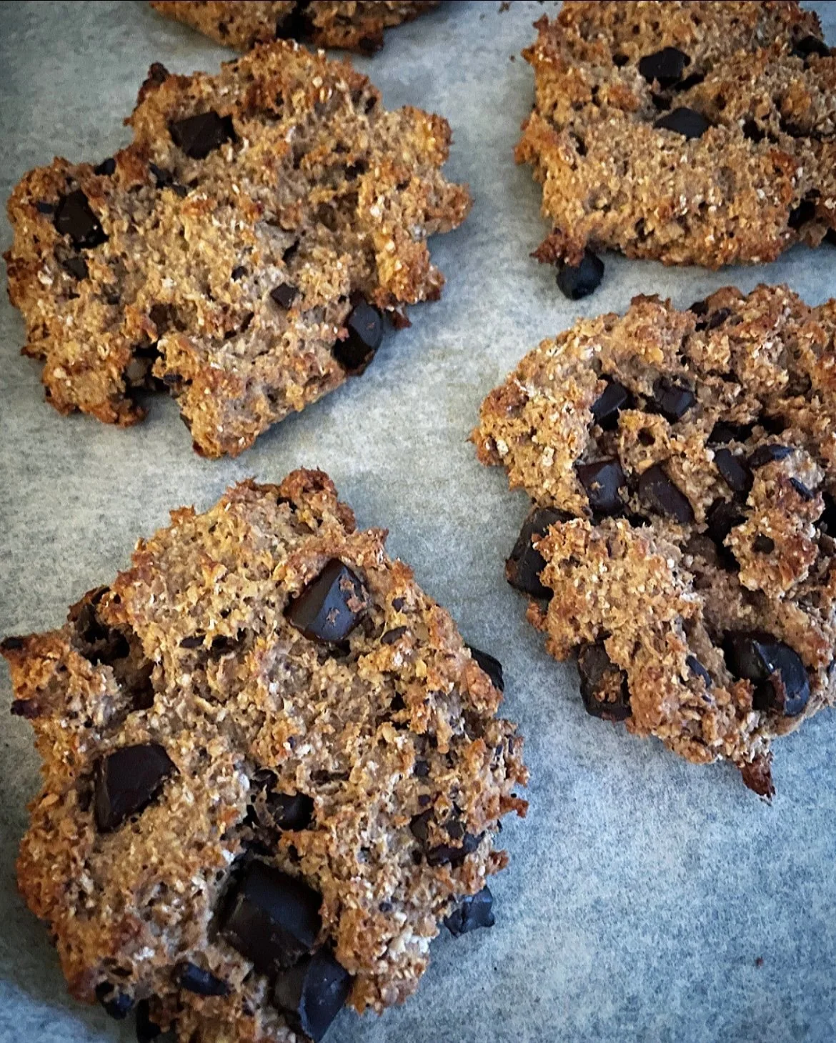 Cookiesene er superenkle å lage, naturlig fri for gluten og kan også gjøres melkefri ved å velge melkefri sjokolade eller tilsette rosiner isteden.