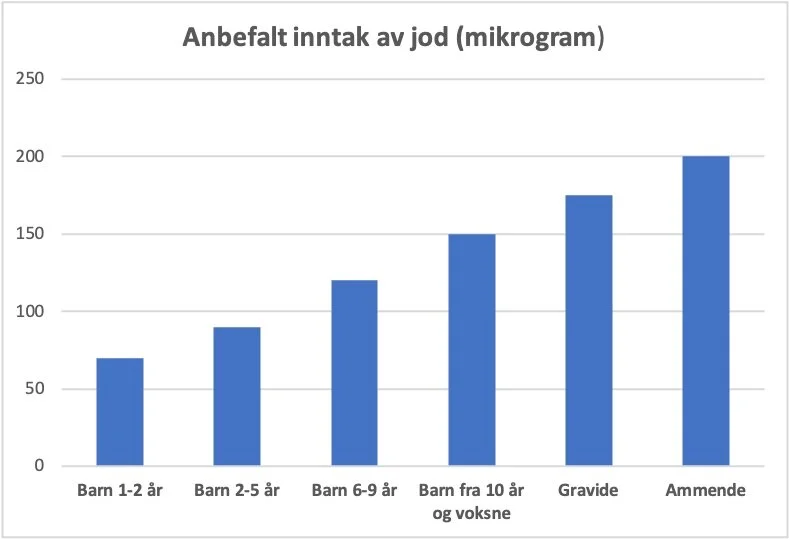 Helsenorge. (2018). Viktig å få nok jod. Hentet 15. juni 2021 fra https://www.helsenorge.no/kosthold-og-ernaring/sma-grep-for-et-sunt-kosthold/derfor-trenger-vi-jod/