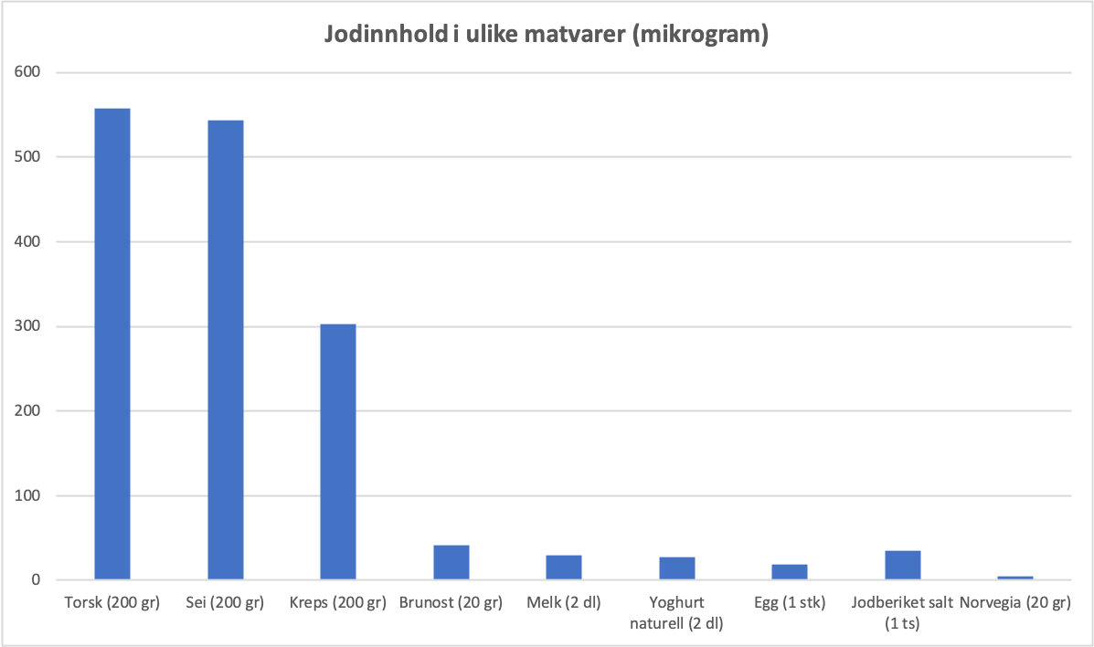 Tabell 2. Jodinnhold i ulike matvarer (oppgitt i mikrogram)