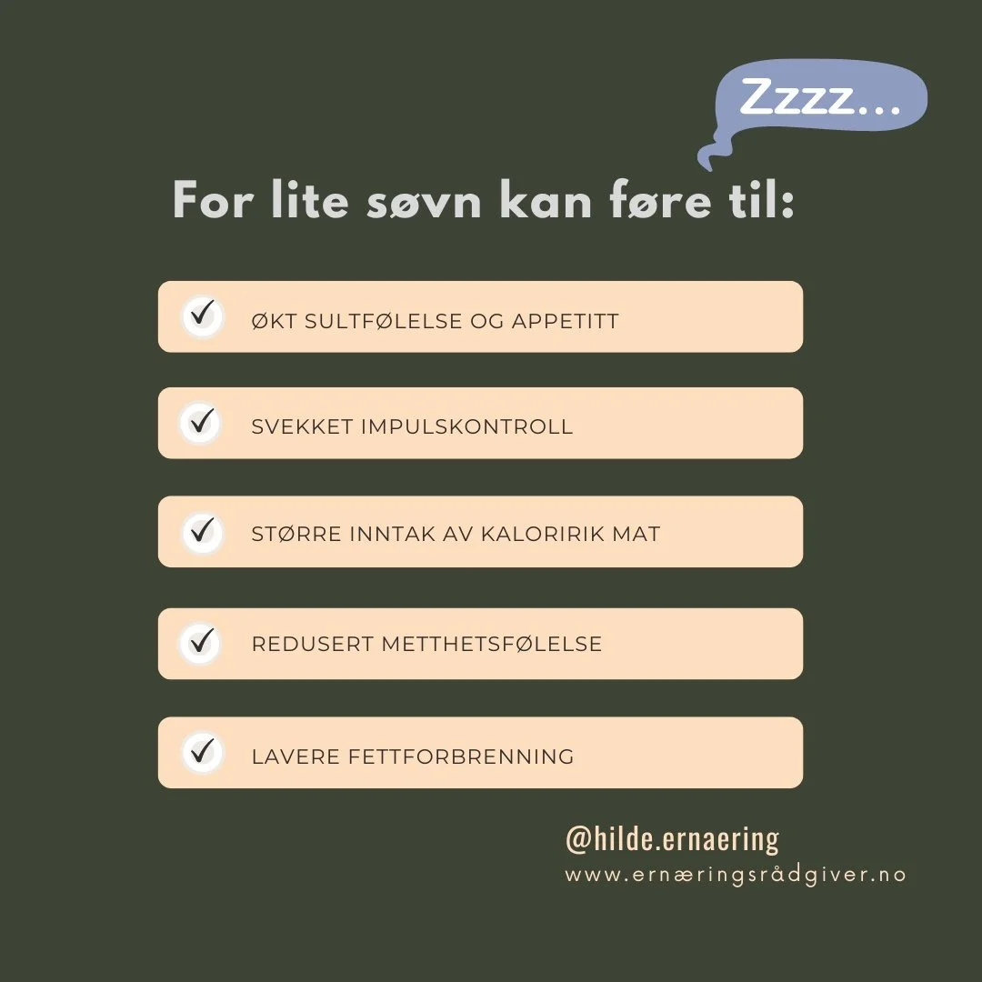 Får man en ubalanse i disse hormonene kan det føre til at man spiser mer, tar flere usunne valg og dermed lett legger på seg. Når du sover for lite, får du en ubalanse av disse hormonene, nettopp fordi lite søvn gir: